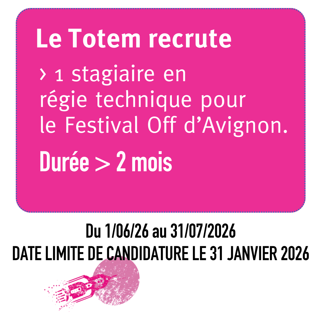 Le Totem recrute un stagiaire en régie technique pour le Festival Off d’Avignon.